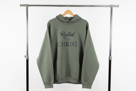 Military Green Unisex Hoodie Sweatshirt – Rooted in Christ Colossians 2:7
